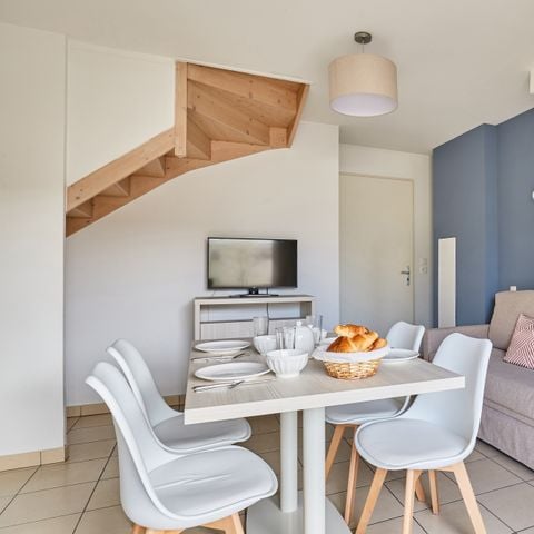 La Résidence Le Mas des Flamants se compose de maisonnettes lumineuses offrant un séjour confortable avec un jardin ou une terrasse aménagée. Tous les logements sont entièrement équipés avec une kitchenette fonctionnelle (plaques vitrocéramiques, réfrigérateur, micro-ondes/grill, lave-vaisselle) et un coin repas. Le confort des appartements comprend également la climatisation (à l'étage pour les duplex), l'accès à la télévision et la connexion Wi-Fi (inclus dans la formule Location, parfois en supplément selon le forfait). Pour votre tranquillité, la résidence dispose d'un parking extérieur gratuit (une place par appartement), d'une laverie (avec participation) et propose un service de location de kit bébé sur demande (avec supplément). Les animaux de compagnie sont acceptés (avec supplément).