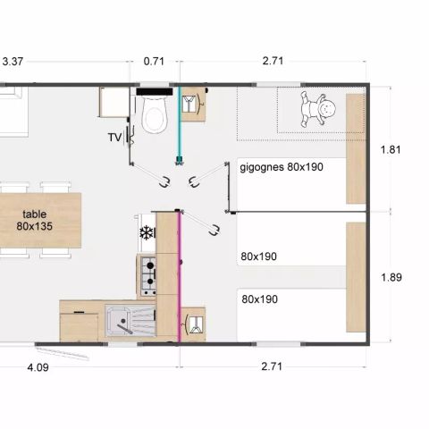Während Ihres gesamten Aufenthalts können Sie alle Dienstleistungen und Einrichtungen nutzen, die der Campingplatz zu bieten hat. Den Urlaubern stehen unter anderem verschiedene Fernsehkanäle und ein WLAN-Zugang zur Verfügung. Es gibt auch einen Brötchenservice. Es gibt einen Lebensmittelladen und eine Bar sowie einen Imbiss, sodass Sie nicht weit fahren müssen, um sich zu verpflegen.