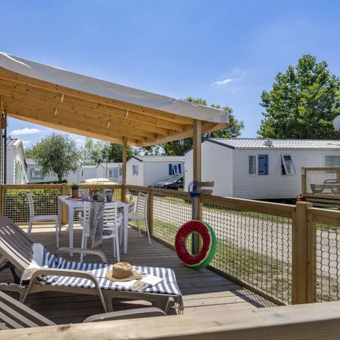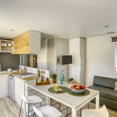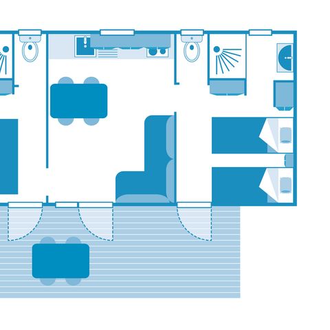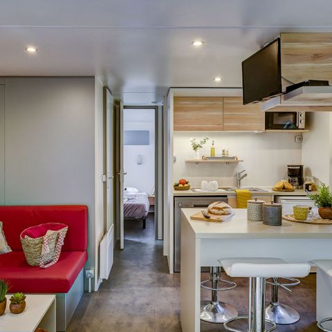 Ein weiteres Plus: Der Campingplatz Sandaya Le Kérou bietet verschiedene Einrichtungen für Kinder, damit Sie Ihre Kinder während Ihres Aufenthalts unterhalten können! Nur in der Hochsaison öffnen eine Wasserrutsche und ein Spielplatz ihre Türen für die jungen Gäste.