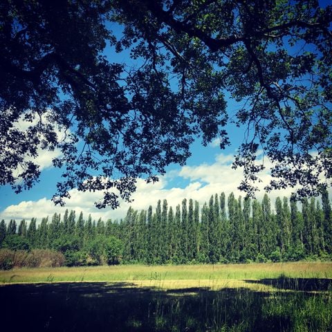 - Una finca arbolada bordeada por el río