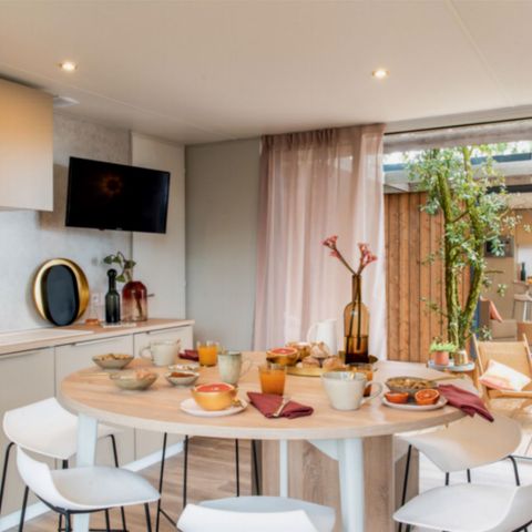 Le encantará la calidad del camping 5 estrellas Mv Resort de Langrune-sur-Mer, en Calvados. Es un lugar ideal para pasar las vacaciones con la familia y los amigos. El camping se encuentra en un entorno privilegiado en Baja Normandía. Su situación costera lo convierte en un destino de vacaciones ideal. También podrá disfrutar del placer de nadar en la piscina cubierta climatizada del camping, que sólo abre en temporada alta. También dispone de una piscina exterior climatizada cuando hace buen tiempo.