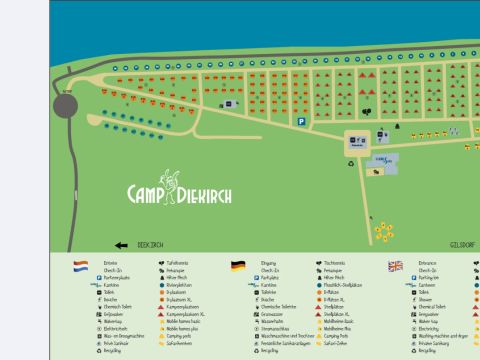 Vodatent Camp Diekirch está situado en el corazón de Luxemburgo, justo a orillas del río Sûre y rodeado de verdes colinas y bosques. Este encantador camping es un destino ideal para familias jóvenes que quieran combinar naturaleza, comodidad y actividades variadas. Aquí se alojarán en tiendas de safari totalmente equipadas y disfrutarán de un ambiente de vacaciones relajado, perfecto para una estancia inolvidable con niños.