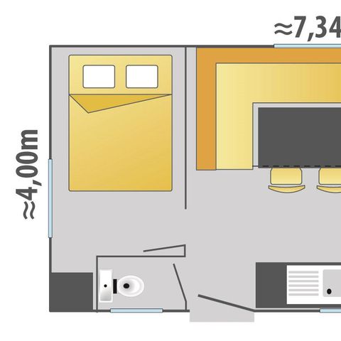 Côté services, vous trouverez un snack-bar avec plats à emporter ou à manger en terrasse. Le centre ville se trouve à 800 mètres.