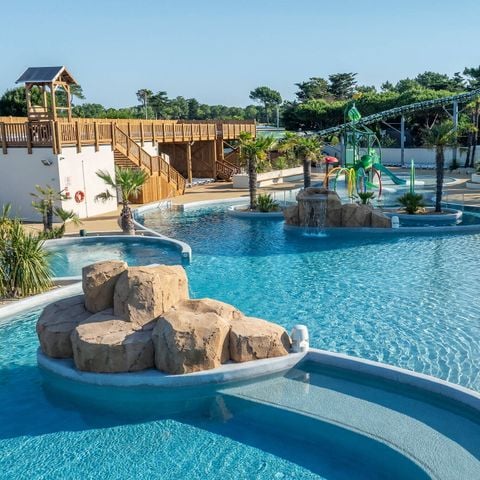 Le Camping 5 étoiles Le Domaine du Clarys est idéalement situé à Saint-Jean-de-Monts, au cœur de la Vendée et sur la Côte Atlantique. Son emplacement est l'un de ses plus grands atouts : il bénéficie d'un accès facile à la plage de sable fin des Mouettes, qui se trouve à seulement 400 mètres de l'établissement. La station balnéaire de Saint-Jean-de-Monts, avec sa forêt et ses pistes cyclables, est à proximité. Le camping est une base idéale pour explorer les richesses de la Vendée, comme l'Île d'Yeu (accessible par bateau depuis Saint-Gilles-Croix-de-Vie), le Puy du Fou (à environ 1h30 de route) et les parcs de loisirs alentours. Pour les plaisirs aquatiques, le domaine dispose de deux grands espaces aquatiques chauffés, incluant une piscine couverte, une piscine extérieure, de multiples toboggans à sensations (dont un SpaceBowl et un toboggan double-piste), une rivière paresseuse et une aire de jeux aqualudique pour les plus petits.