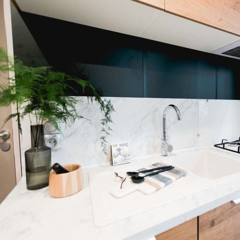 Concernant le confort et les prestations, un désastre et beaucoup d'affirmations mensongères, à savoir : une literie hors d'usage, avec un vieux sommier en metal obsolète. J'ai souffert du dos du début à la fin de mon séjour. Quant à la couverture et les oreillers qui ont passé toute la haute saison, je n'ose pas imaginer la quantité d'acariens et les microbes qui les infestaient. Heureusement, j'avais ma propre couette, mon propre oreiller ainsi que mon protège matelas (un vrai !) et il était nécessaire, vu l'état du matelas. Pas de bouilloire ni grille pain, sous prétexte que ce camping 3 étoiles ne dispose pas de la puissance d'ampères nécessaire. Idem pour le réseau internet qu'ils affirment dans leur document de présentation couvrir l'ensemble du site, c'est archi faux, il me l'ont bien affirmé qu'il n'y avait pas de réseau.