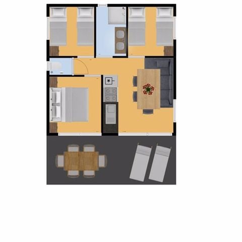 Tous les mobil-homes disposent d'un lit double dans la chambre principale. Vous devez donc réserver un paquet de draps pour deux personnes (19,00 € par personne) si vous souhaitez l'utiliser. Pour les autres chambres, vous pouvez réserver un paquet de linge de lit simple (11,00 € par personne).