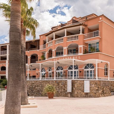 En savoir plus sur Clef VerteL'Hôtel de l'Esterel Pierre & Vacances vous accueille à Agay, au cœur du domaine piétonnier de Cap Esterel, un cadre exceptionnel de 210 hectares de nature préservée, surplombant la magnifique baie d'Agay sur la Côte d'Azur. L'établissement jouit d'une situation géographique idéale, au pied du Massif de l'Esterel et de ses falaises rouges, offrant des panoramas à couper le souffle et d'innombrables possibilités de randonnées à pied ou à VTT. Vous pourrez facilement rejoindre la plage de sable de la baie d'Agay ou celle de galets du Dramont, à pied ou grâce au petit train qui circule dans le village. Le complexe met à votre disposition plusieurs piscines ou bassins aquatiques, dont une piscine extérieure chauffée, ainsi qu'un parc aquatique gratuit pour le plaisir de toute la famille (avec bassin de nage, bassin ludique, piscine à vagues, toboggans, bains bouillonnants et jets d'eau - ouverture selon saison). Les célèbres Corniche d'Or, Saint-Raphaël et Fréjus sont également à découvrir aux alentours.