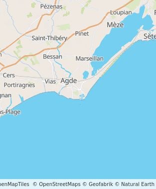 - Aéroport Béziers – Cap d’Agde en Languedoc (15 km). Bus Ligne 210 arrêt Agde Gare SNCF, puis CAPBUS N°3 arrêt « les Tenilles ».