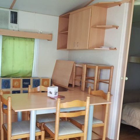 Nous sommes restés deux semaines. À notre arrivée, le mobil-home était sale : j’ai dû faire le ménage partout. Le frigo était cassé, il ne faisait pas de froid. La terrasse était toute abîmée. Les bonbons de bienvenue étaient périmés.