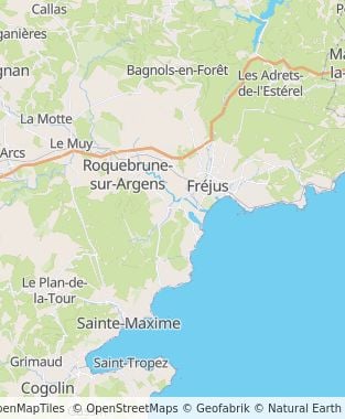 Vanuit Nice neemt u de snelweg A8, afslag nr. 37 Puget Sur Argens (RN7). Rijd door Roquebrune sur Argens en volg de D7 gedurende 7 km in de richting van St Aygulf.