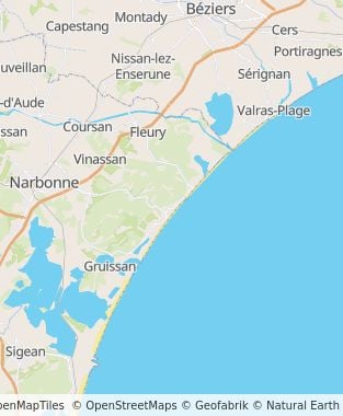 Van oost naar west: neem afrit 37-Narbonne-Est en verlaat de A9/E15/E80. De camping ligt in Narbonne-plage, 17 km ten zuiden van Narbonne.