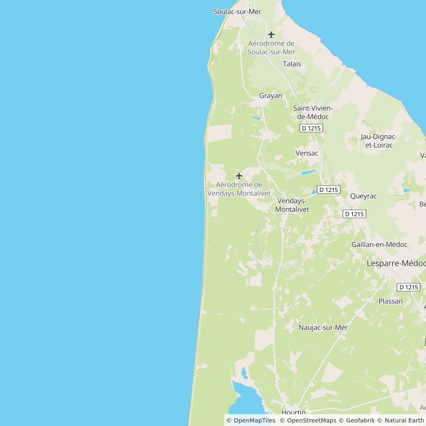 Neem de A10 snelweg, afslag Sainte richting Royan. Neem de veerboot (betalend) tussen Royan en Le Verdon (overtocht van 20 min). Bij de uitgang van de veerboot, neem de richting Soulac-sur-Mer. Dan richting Vendays-Montalivet