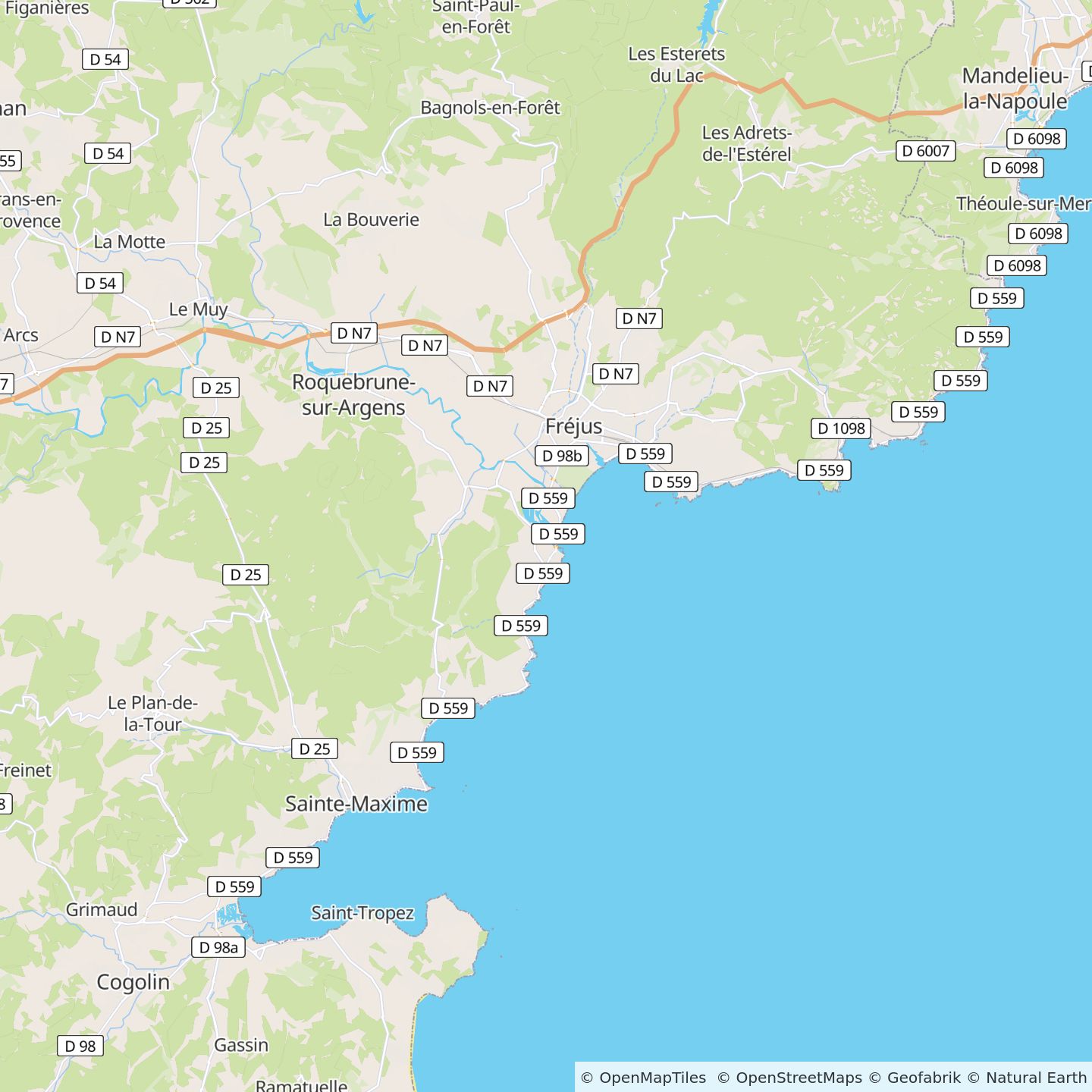 - Vlakbij de stad Saint Raphael en Fréjus