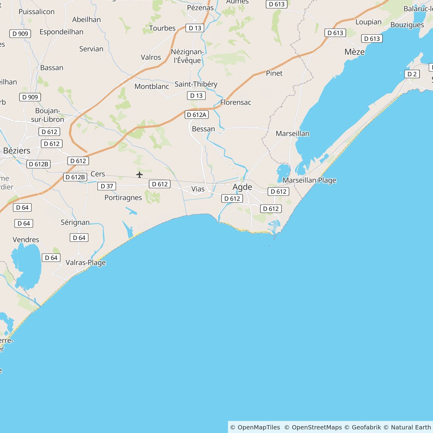 Neem de snelweg, richting Cap d'Agde RD612 - Afslag La Tamarissière.