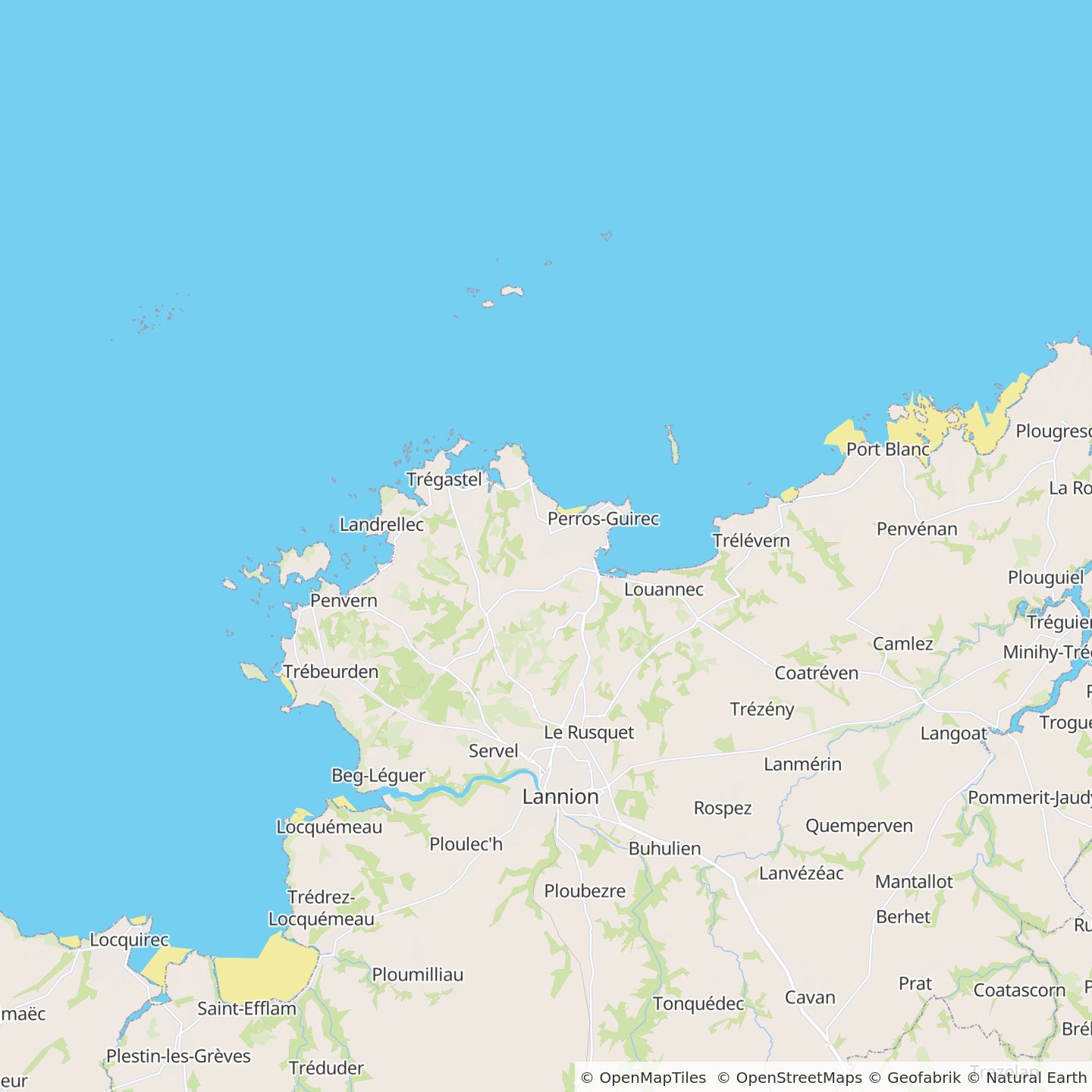 - Brest - Perros-Guirec: neem de richting van D112. Volg de N12 richting de D786 naar Morlaix. Neem de afslag La Boissière en verlaat de N12. Volg de D786 en D788 naar uw bestemming in Perros-Guirec. Duur: 1u30.