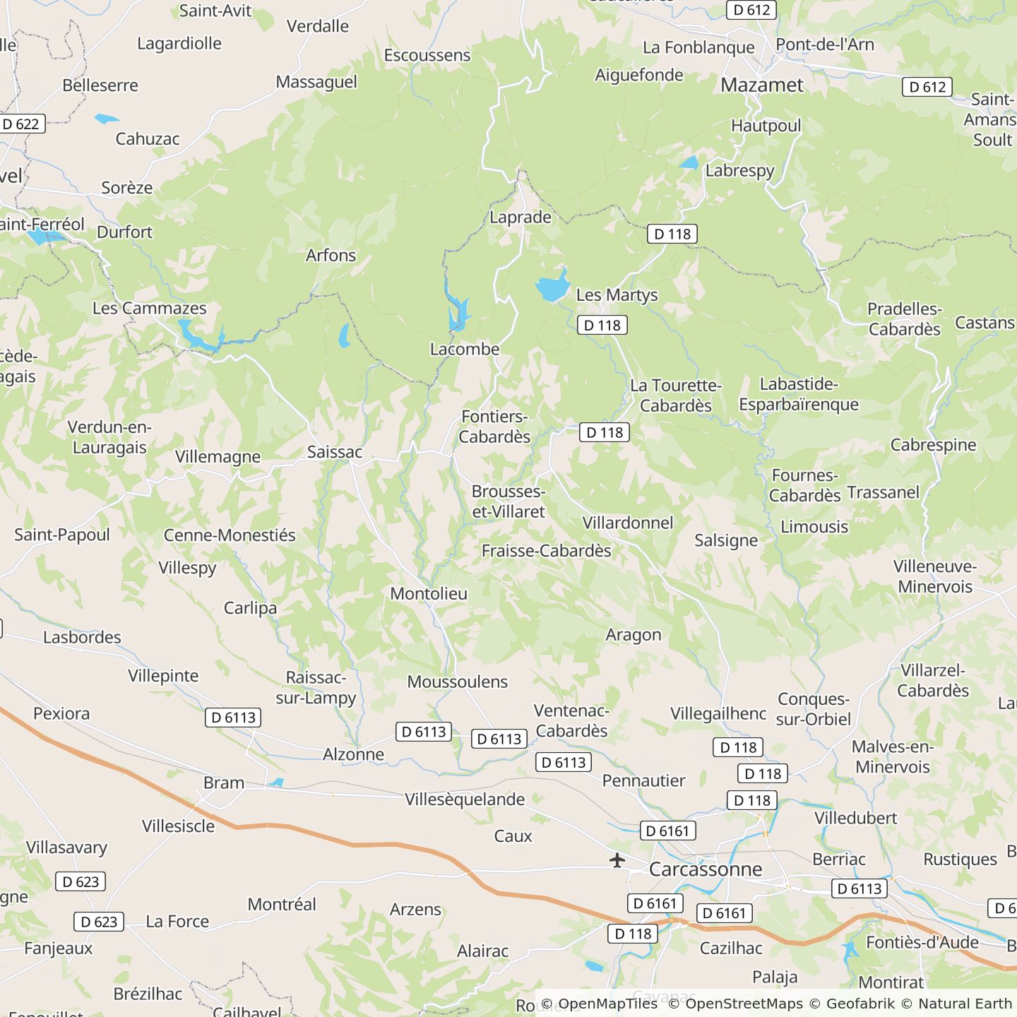 Vanuit Narbonne neemt u de A61 en vervolgens afslag 23 bij Carcassonne Ouest ZI richting Mazamet.