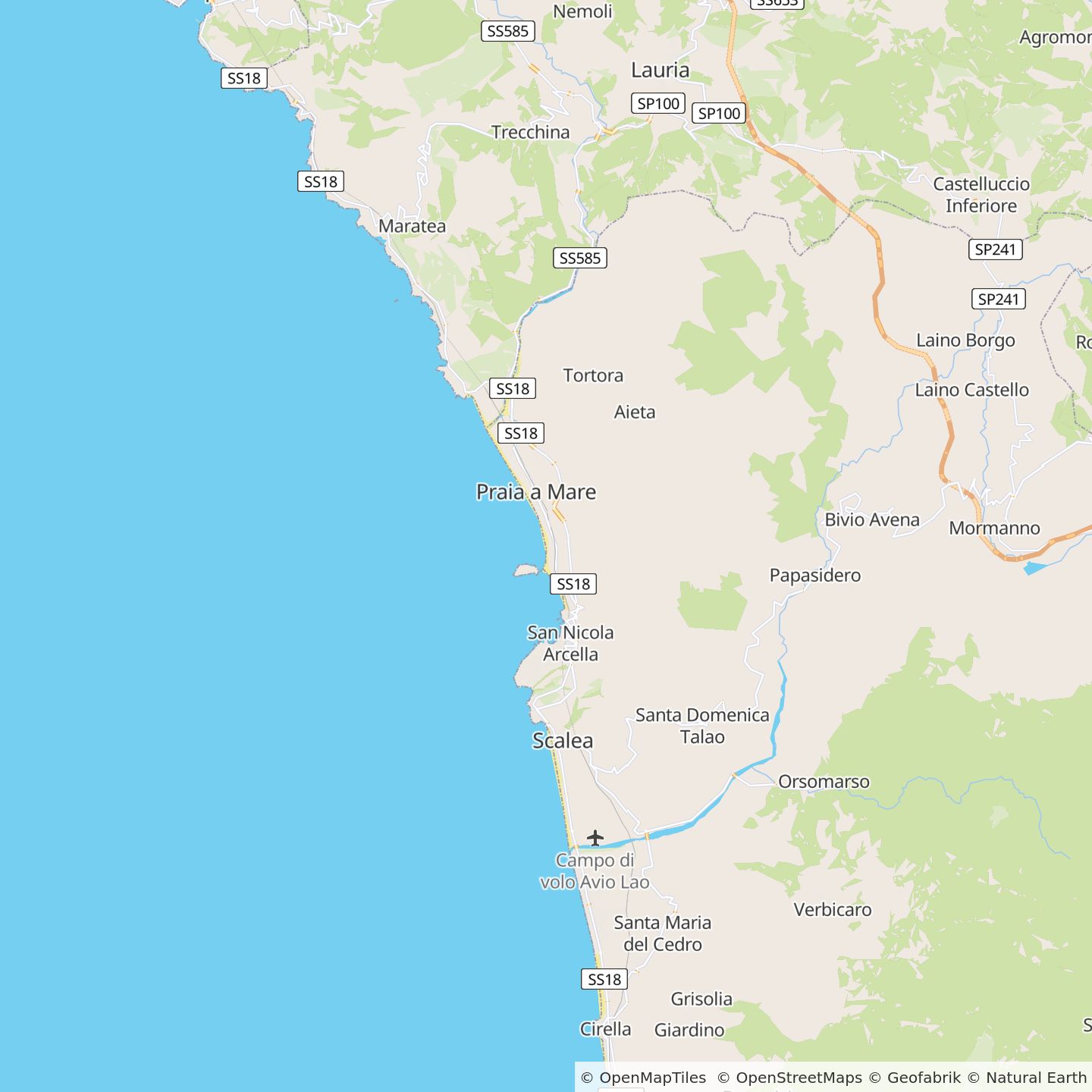 - Vanuit het noorden: Snelweg A3 Salerno - Reggio Calabria (gratis), afslag Lagonegro Nord, snelweg "Fondo Valle Noce", variant SS18 naar Praia a Mare.