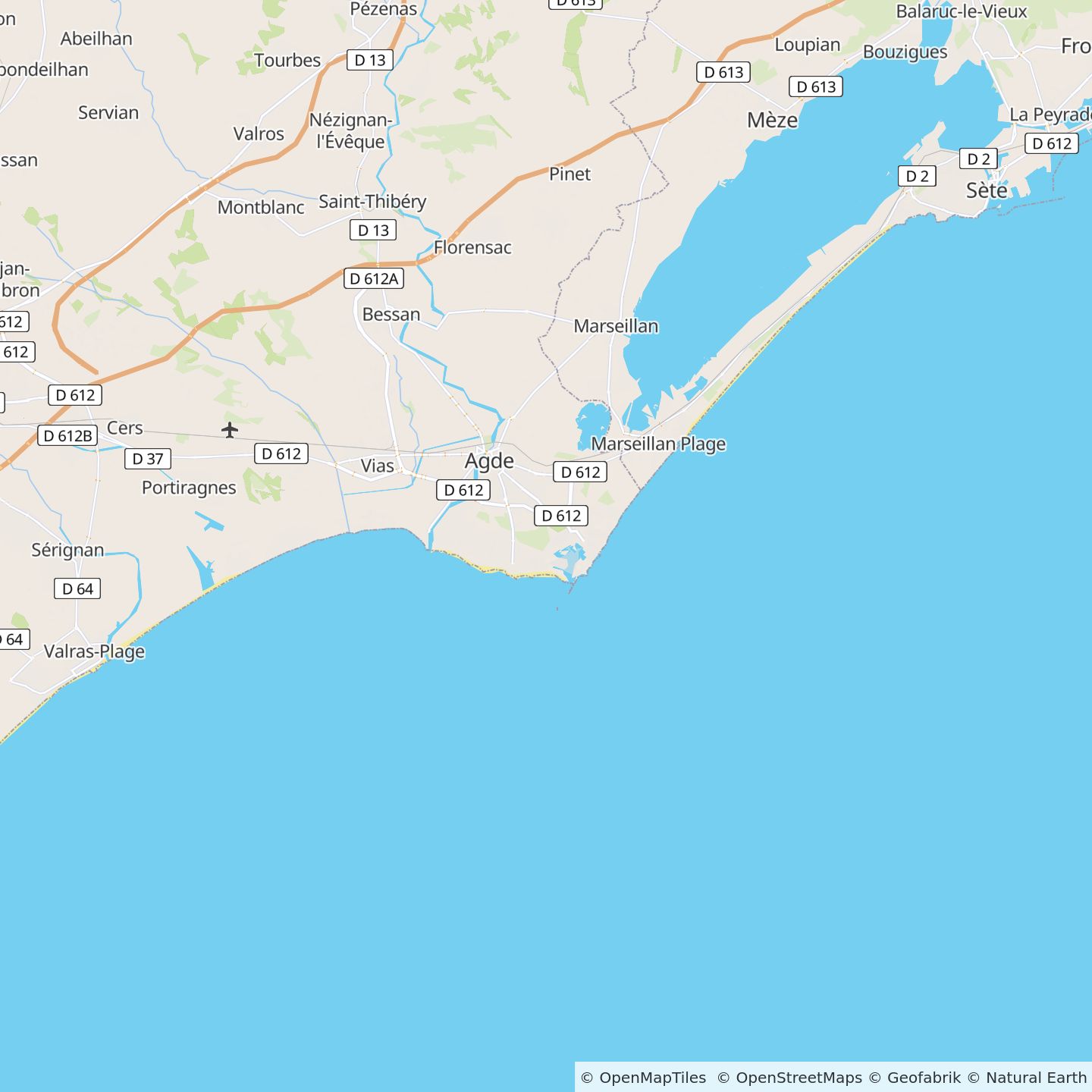 Vanaf de A75 neemt u afslag 60 "A9/Nézignan-l'Evêque / Vias/Agde" naar de D13 (richting A9).