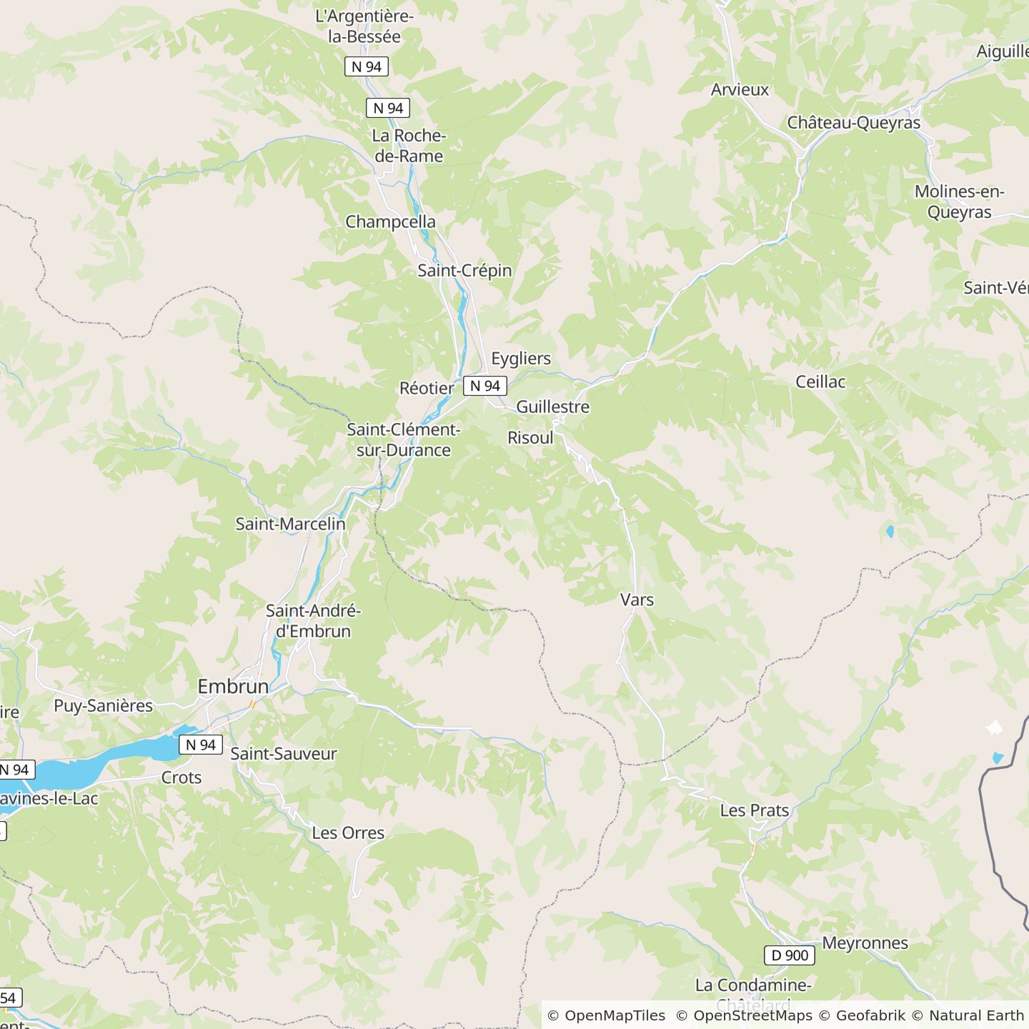Vanuit Grenoble: neem de N85 (Route Napoléon) naar Gap, dan de N94 naar Briançon naar Guillestre. Vanuit Marseille: neem de N91 (Lautaret) tot Briançon, dan de N94 tot Guillestre. Vanuit Marseille: neem de snelweg A51 tot La Saulce, dan richting Tallard en Briançon (N94) tot Guillestre.